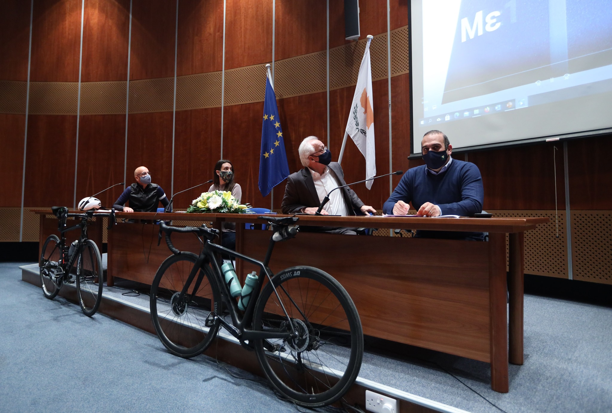 Τις βασικές πρόνοιες του «Σχεδίου Δράσης της Προώθησης Χρήσης του Ποδηλάτου» ανέπτυξε σήμερα ο Υπουργός Μεταφορών, Επικοινωνιών και Έργων κ. Γιάννης Καρούσος, στη συνέντευξη Τύπου που πραγματοποιήθηκε στο Υπουργείο Οικονομικών, στην παρουσία της Δημάρχου Ποδηλάτου Λευκωσίας και Πρέσβειρας Οδικής Ασφάλειας κας Μαρίνας Κυριάκου και του Προέδρου της Κυπριακής Ομοσπονδίας Ποδηλασίας κ. Γιώργου Γεωργίου.